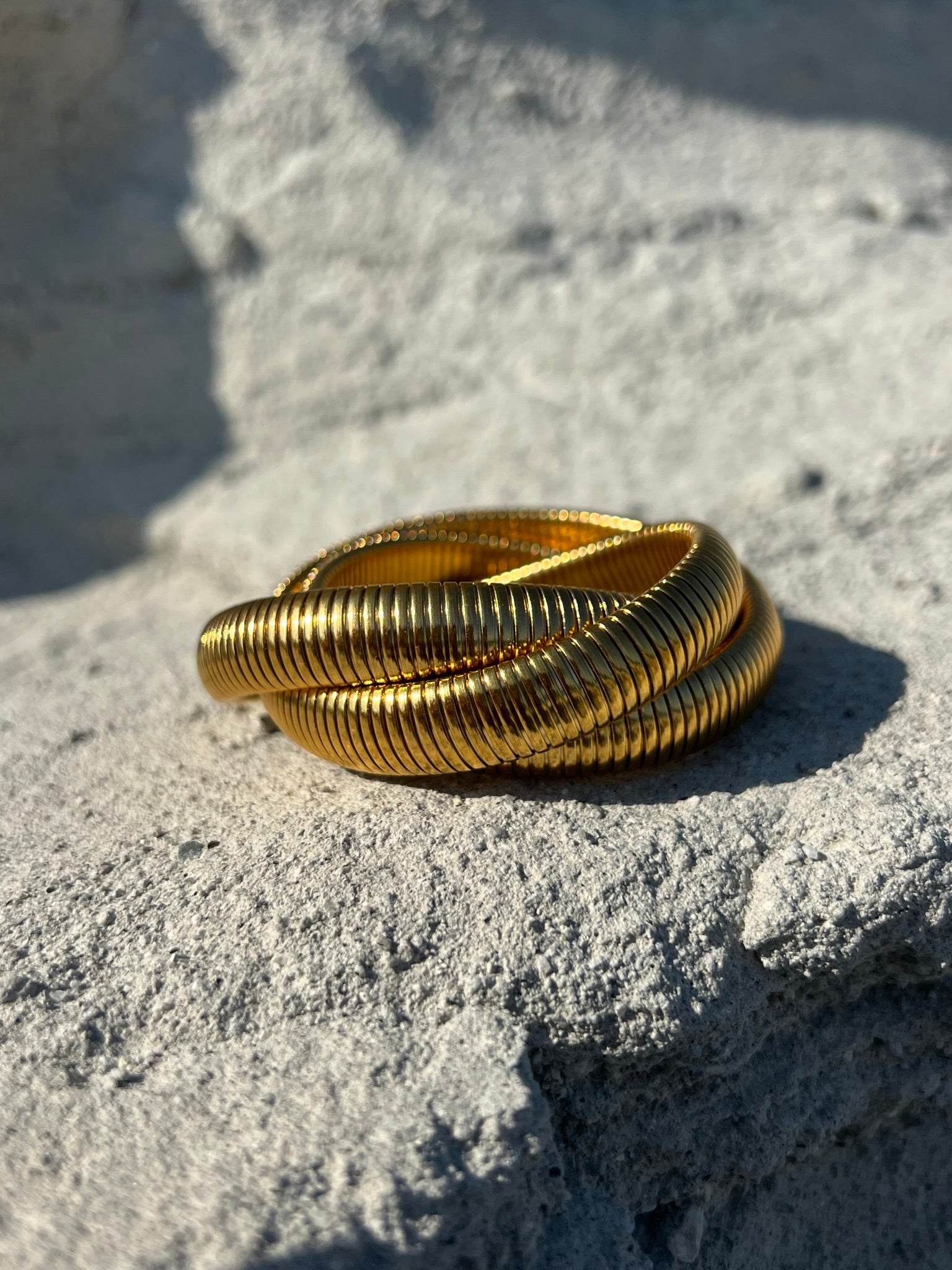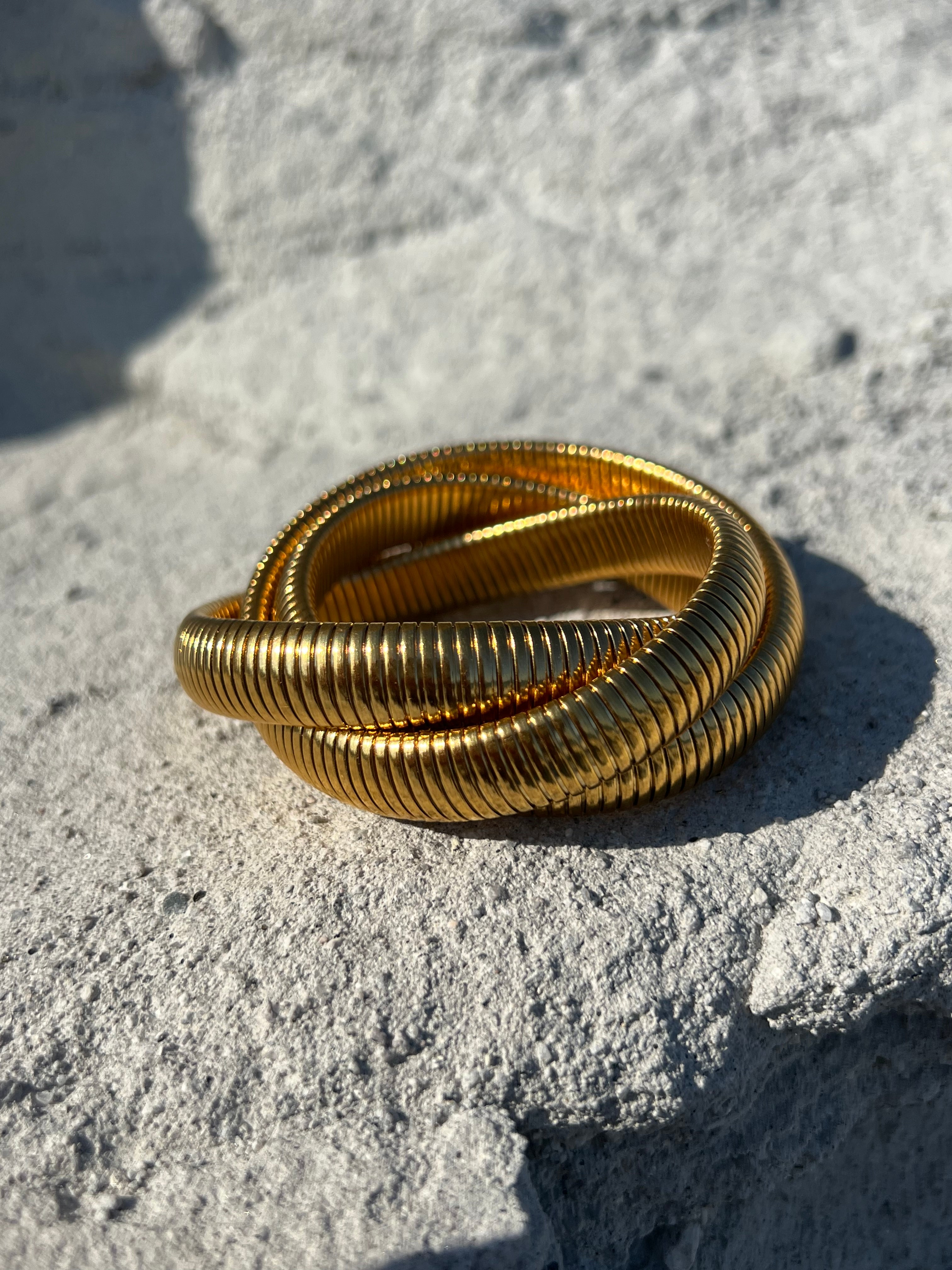 It's time to get wrapped up in a fashionable accessory! Our 18 karat gold-plated Cobra Wrap bracelet takes the hassle out of accessorizing - wear it alone for a subtle style or stack it with other bracelets for an edgier look. Who said you can't have your cake and eat it, too?