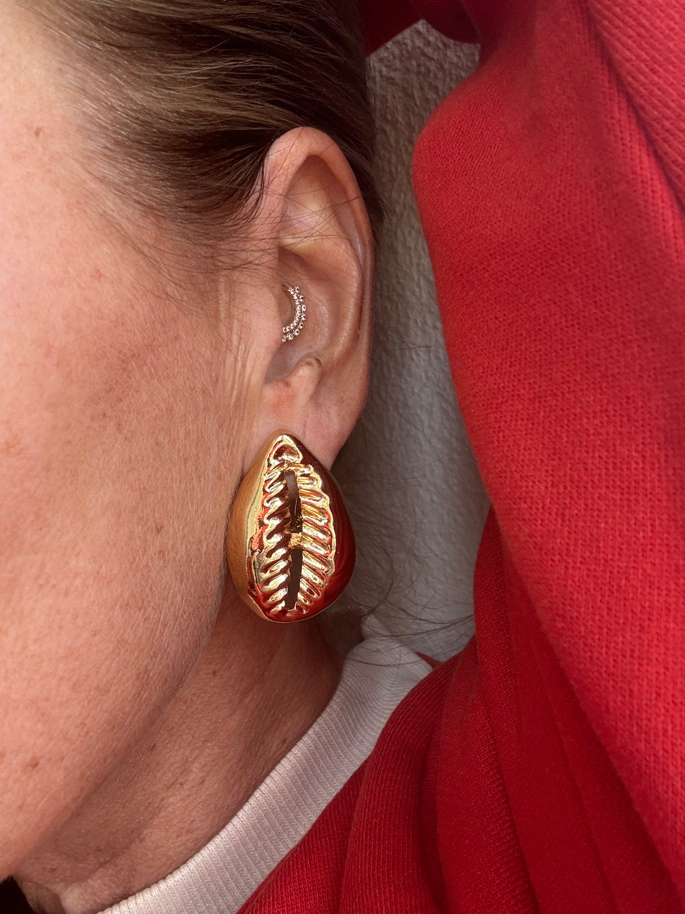 Cow-abunga! These statement La Plage earrings feature brass goldplated cowry shells that add a touch of beachy chic to any outfit. Shine on with these unique accessories that will make you stand out in any crowd. (Shell-ebrate your style!)