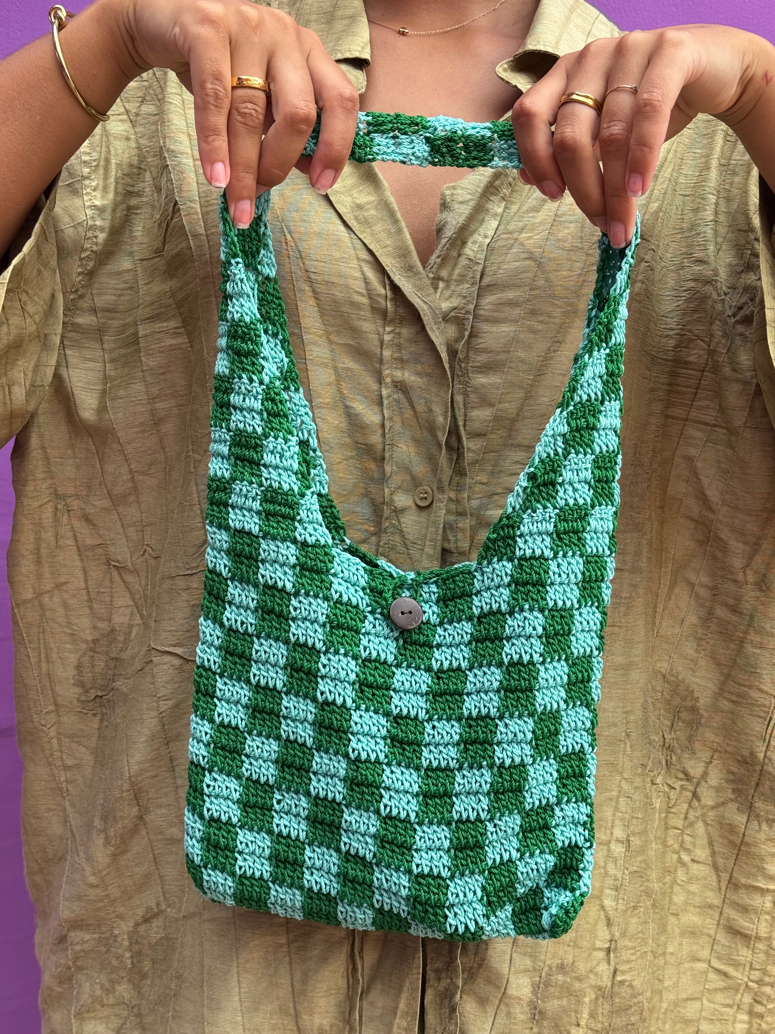 "Get ready to stand out with our Mary Bag big handbag! Handmade by skilled Balinese women, this colourful and fun bag features a unique two-tone checkered pattern and holds more than you think. And to top it all off, each bag takes two days to make, making it truly one-of-a-kind. Don't wait, add a splash of personality to your wardrobe today. (Limited availability - get yours before it's gone!)"