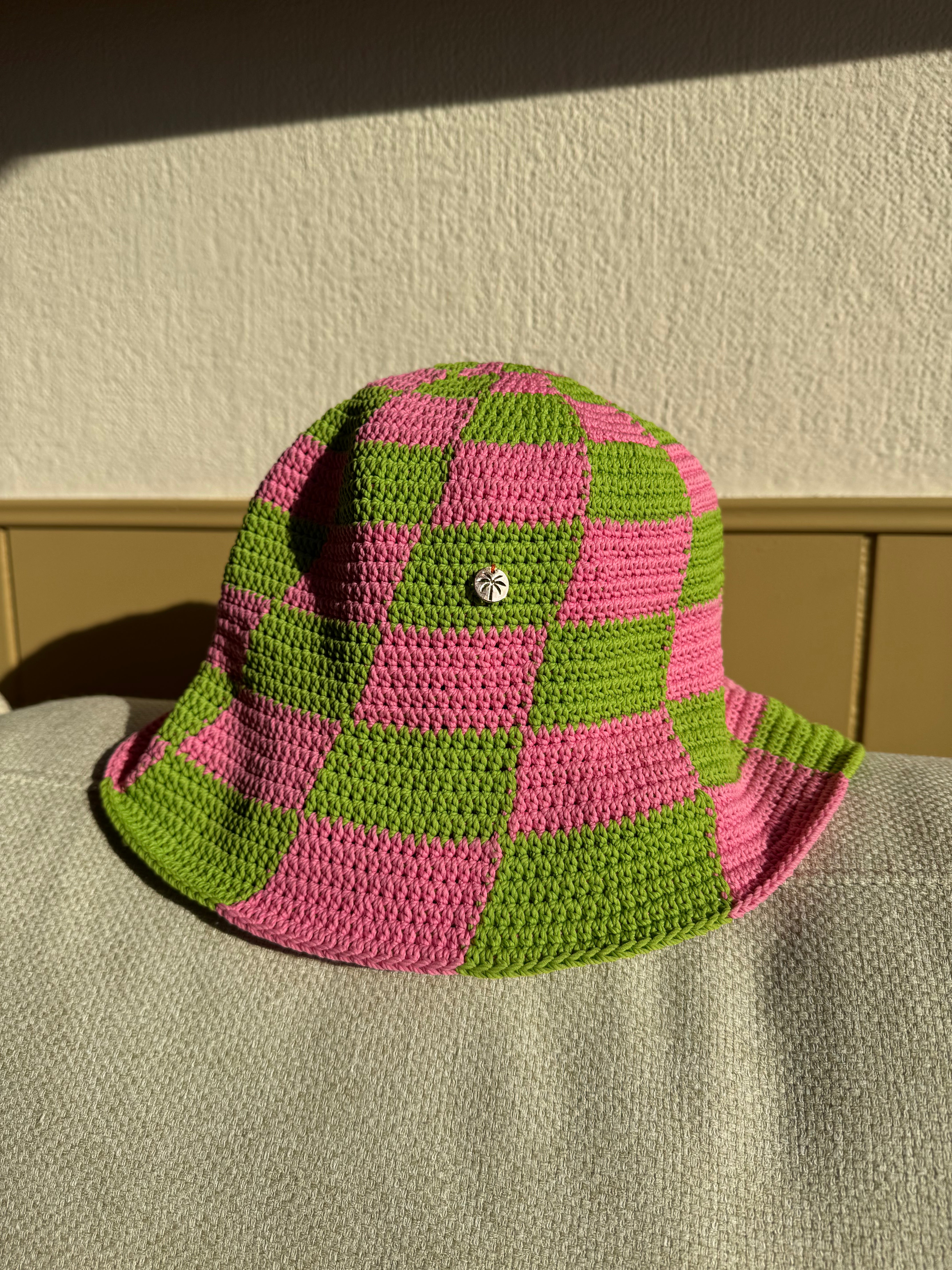 et ready to turn heads with the Mary hat! Named after the Balinese woman who makes them. This unique, handcrafted crochet hat is a must-have for any summer outfit. Each hat takes 2 days to create and features a vibrant two-tone check pattern. Stand out from the crowd with this fun and playful accessory!