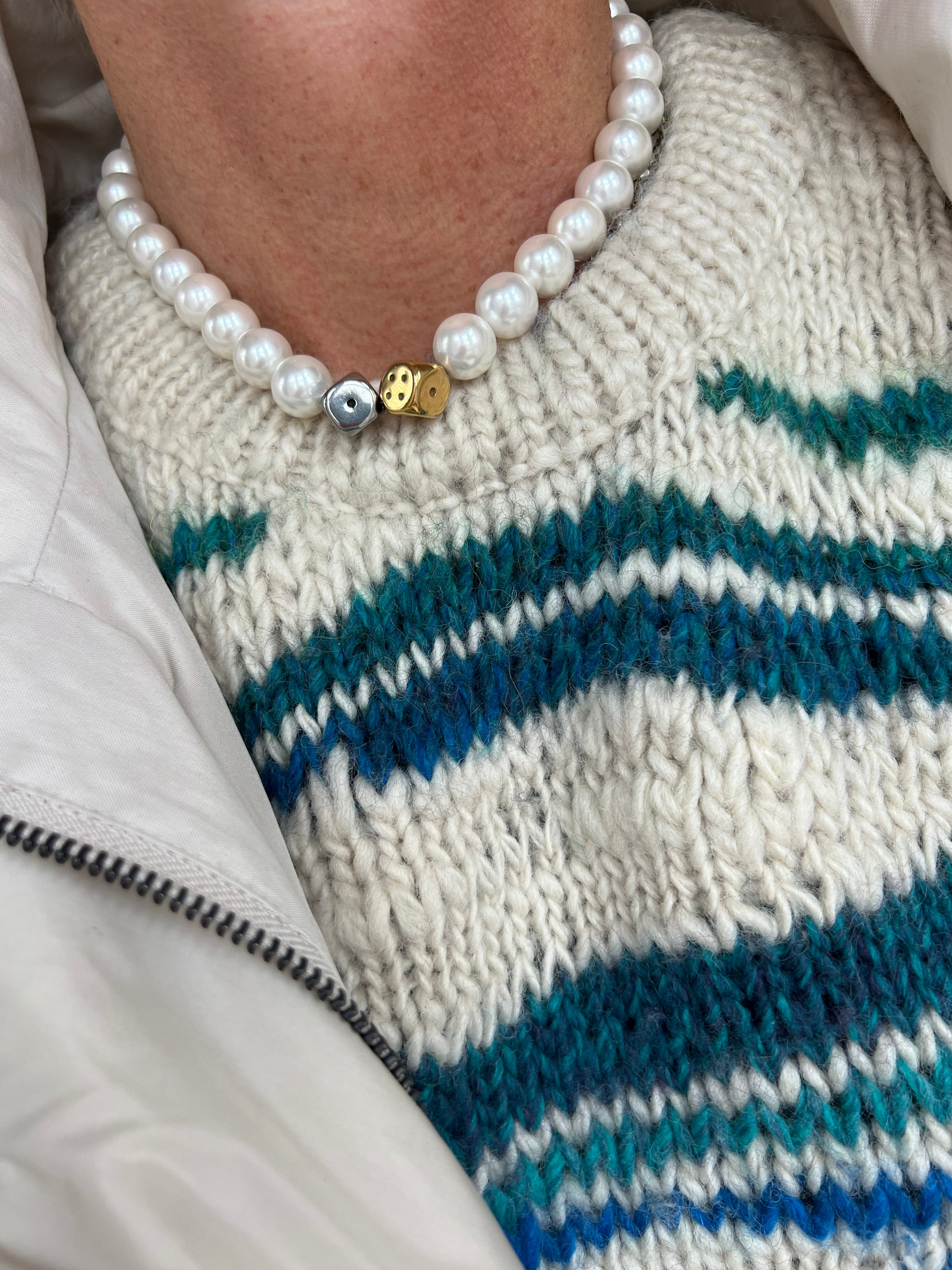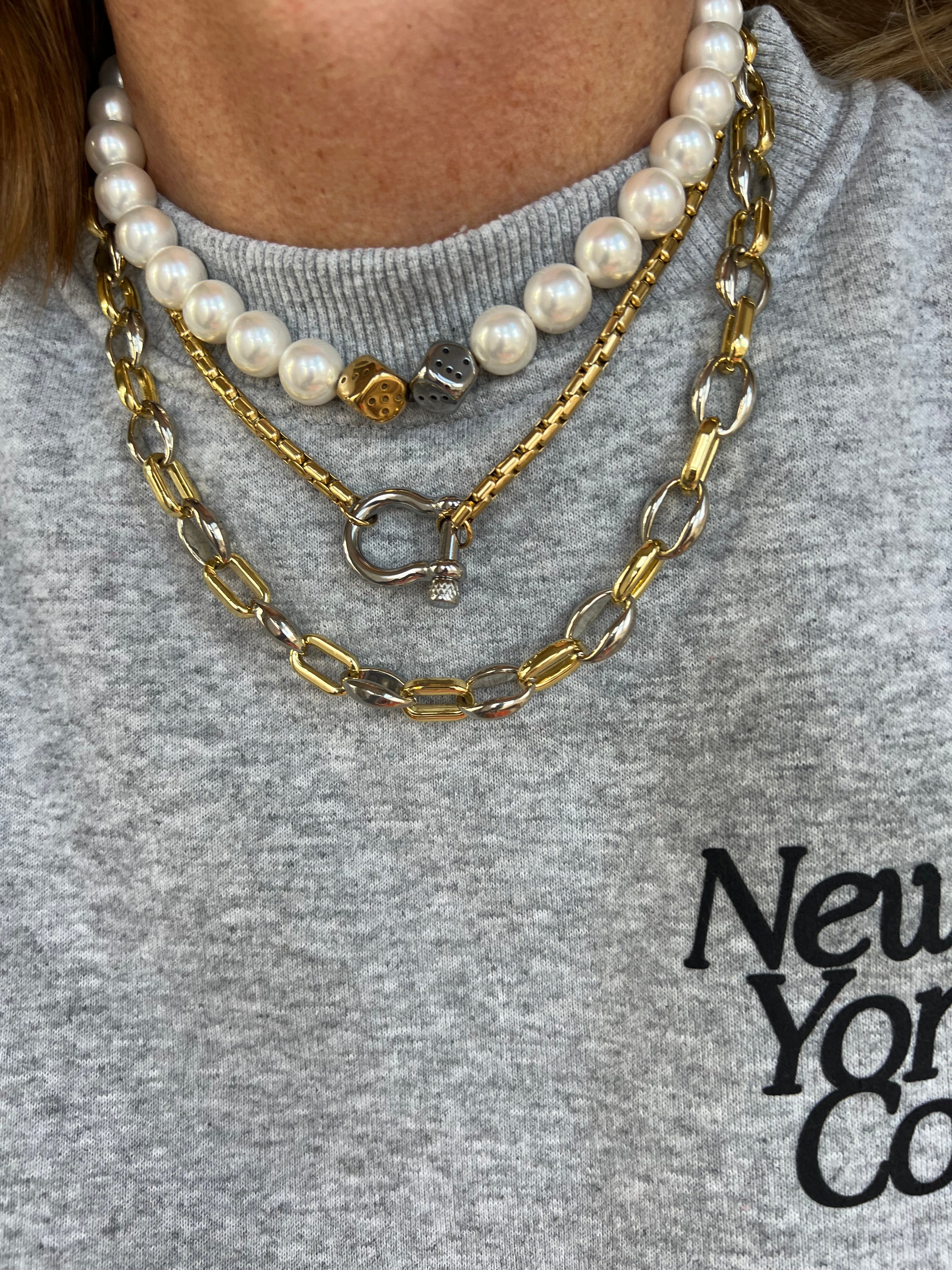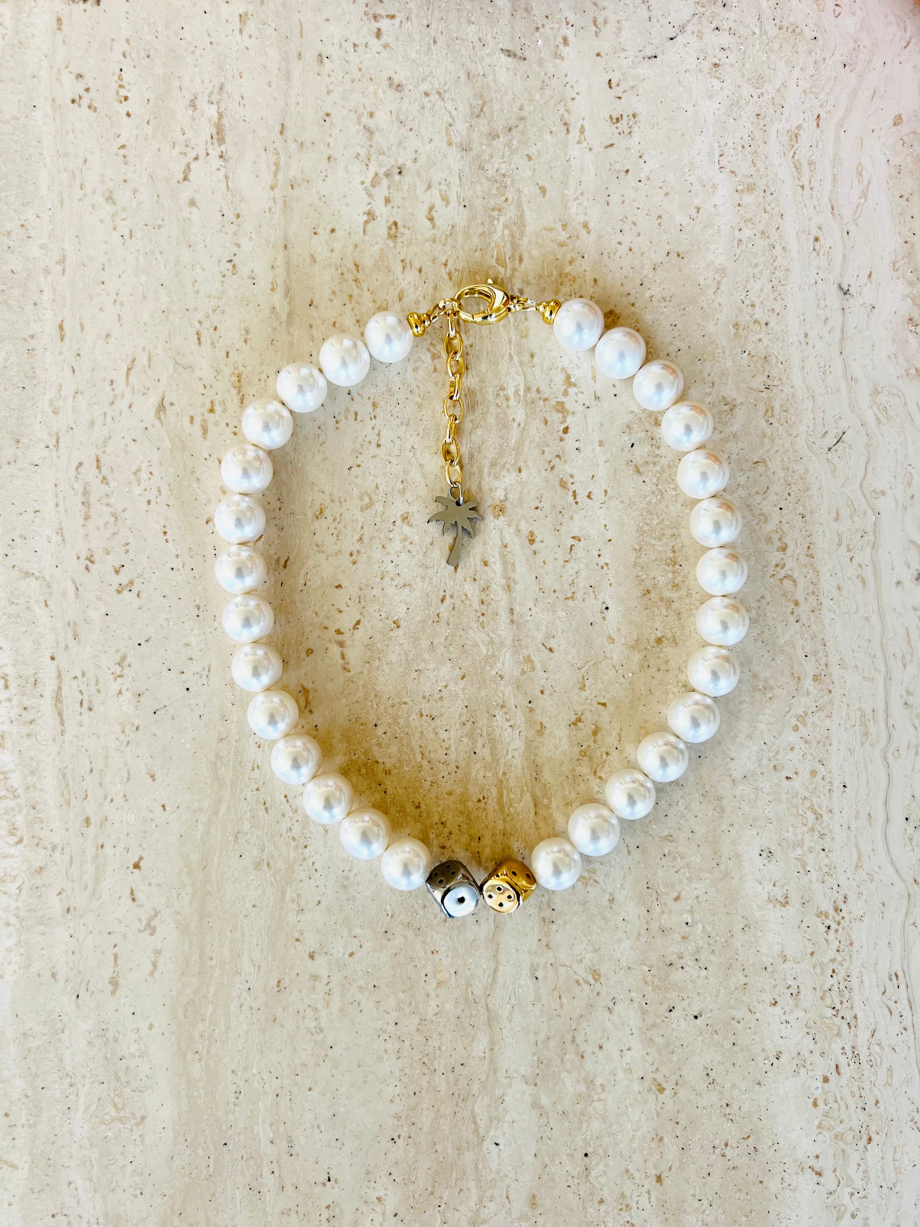 Introducing our signature Pair a Dice Pearl necklace! Made with a silver and gold plated pair of dice, this necklace adds a touch of glamour to any outfit. The perfect accessory for those who like to take risks and have a little fun (dice pun intended).