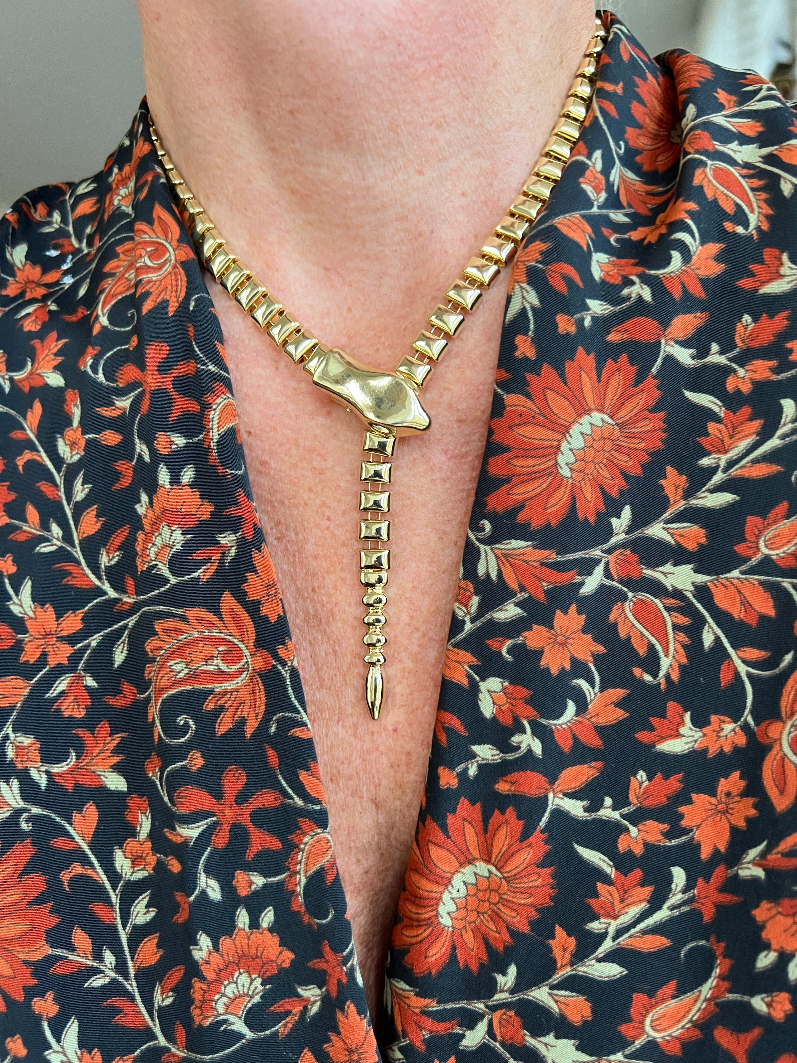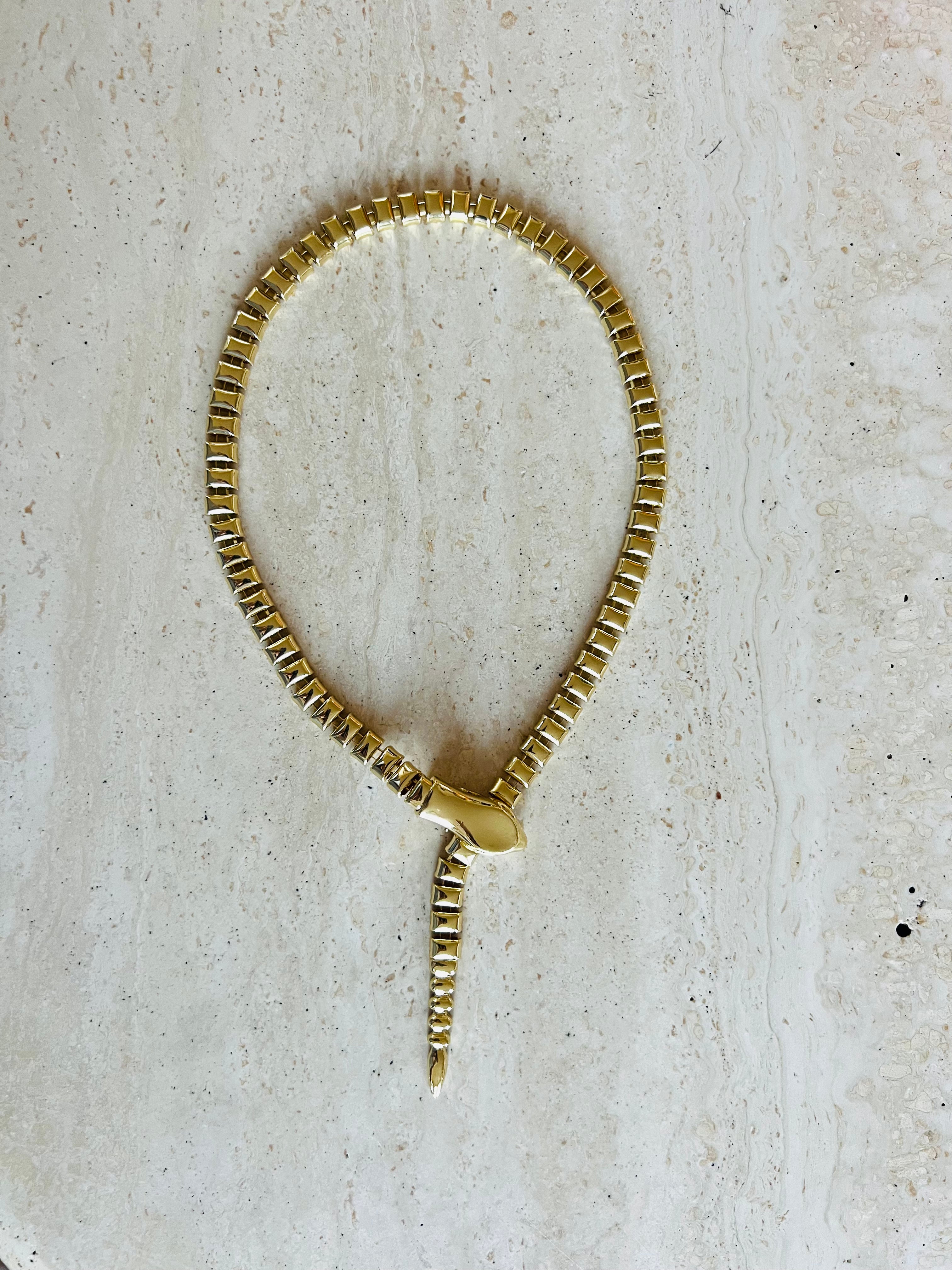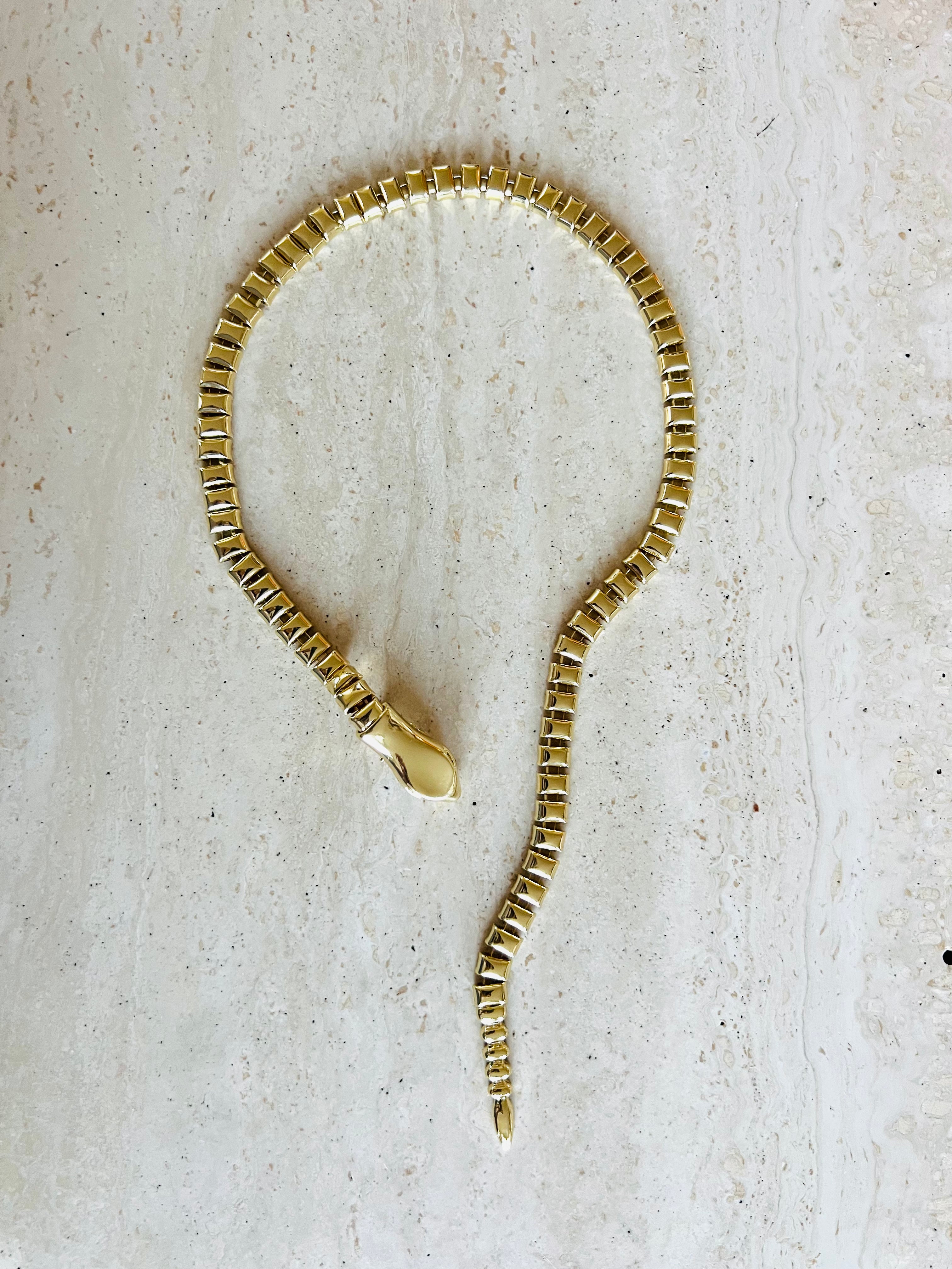 Show off your wild side with this edgy snakie necklace! Crafted from real gold plated material, its adjustable link chain ensures a snug fit all day long. Make any outfit pop with this bold, statement piece! 🐍