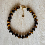 This 16mm tiger eye bead necklace is not only a chic statement piece, but also offers protection and can instill courage and confidence. Crafted with expert care, this necklace exudes strength and elegance. Let it be a powerful addition to your accessories collection, providing both style and potential benefits.