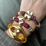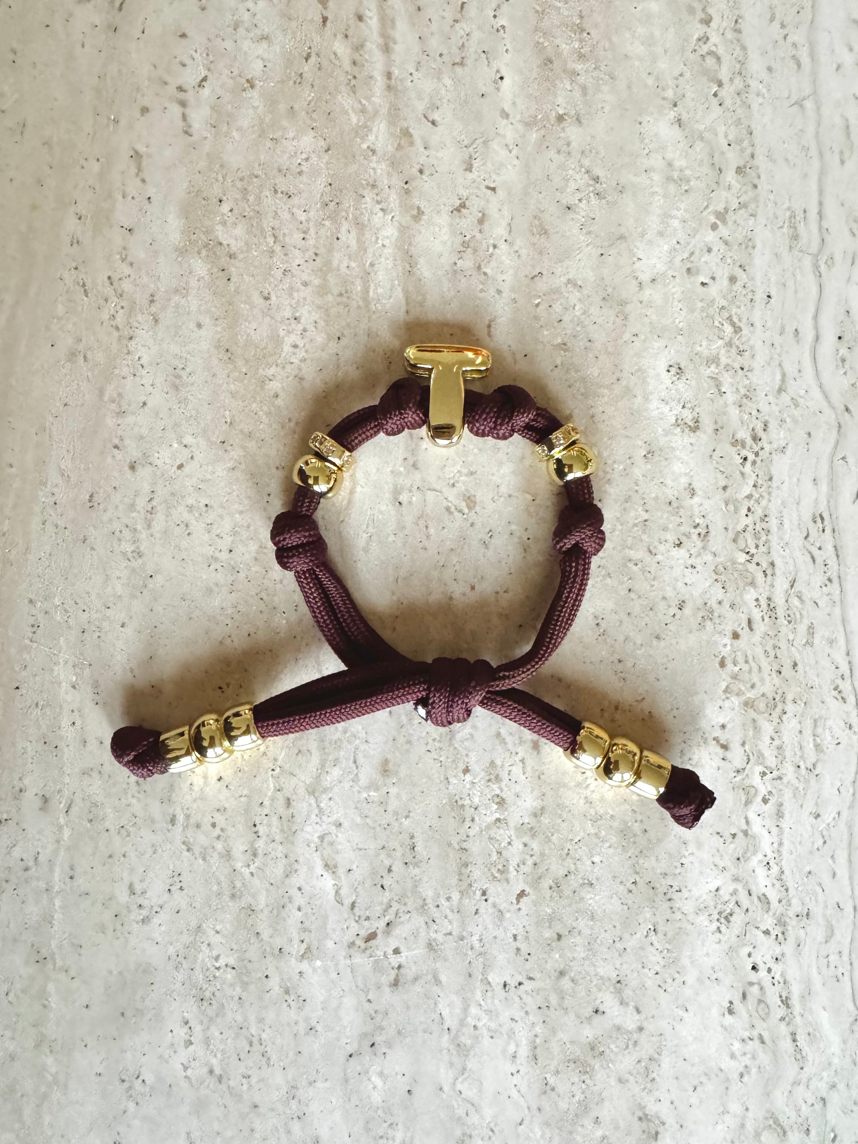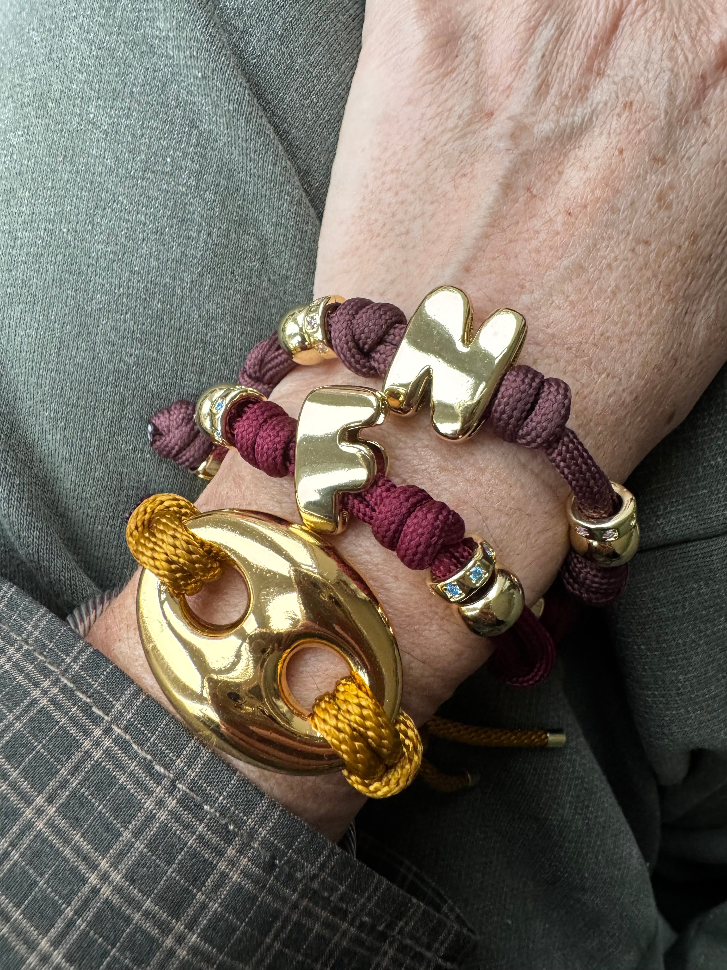 Make it personal, make it bold. Our Initial Bracelets are hand-knotted on rich cord in either deep burgundy or warm brown, finished with chunky gold-plated beads that bring a luxurious glow to your everyday stack.